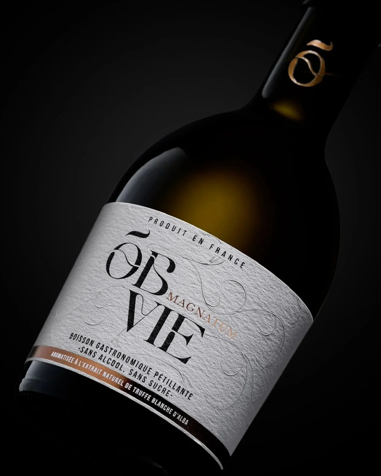 Première création de la maison, MAGNATUM incarne l’ADN d’ÕBVIE. Pétillante, sans alcool ni sucre, cette boisson se distingue par sa finesse saline et ses arômes de truffes, véritables trésors de la gastronomie.